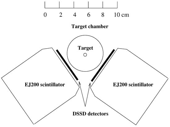 In the present experiment, two detector telescopes consisting of Double-sided Silicon Strip Detectors (DSSDs) and plastic scintillators were used, placed at an angle of 110° with respect to each other as shown in Figure 2.