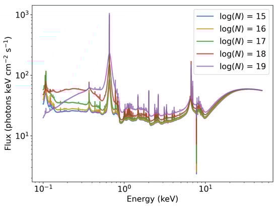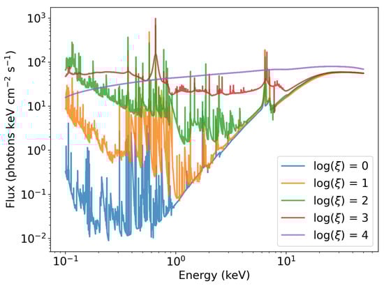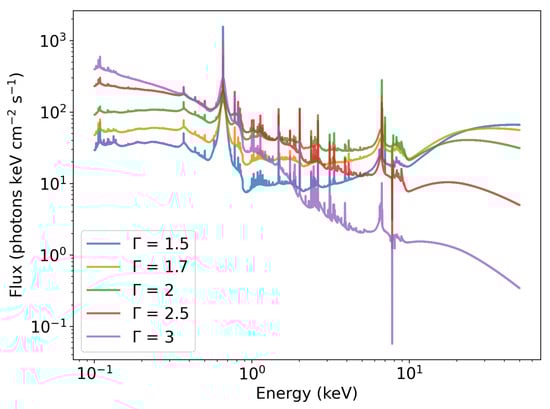- Garcia, J.; Kallman, T. X-ray reflected spectra from accretion disk models. I. Constant density atmospheres. Astrophys. J. 2010, 718, 695. [Google Scholar] [CrossRef]