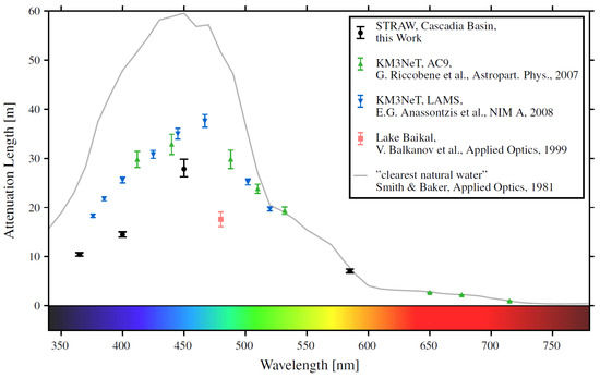 - Anassontzis, E.G.; Ball, A.E.; Belias, A.; Fotiou, A.; Grammatikakis, G.; Kontoyiannis, H.; Koske, P.; Koutsoukos, S.; Lykoussis, V.; Markopoulos, E.; et al. Light transmission measurements with LAMS in the Mediterranean Sea. Nucl. Instrum. Methods Phys. Res. Sect. A Accel. Spectrometers Detect. Assoc. Equip. 2011, 626–627, S120–S123. [Google Scholar] [CrossRef]
