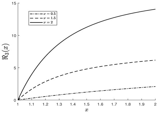 Illustration of the behavior of the function for three values of the parameter .