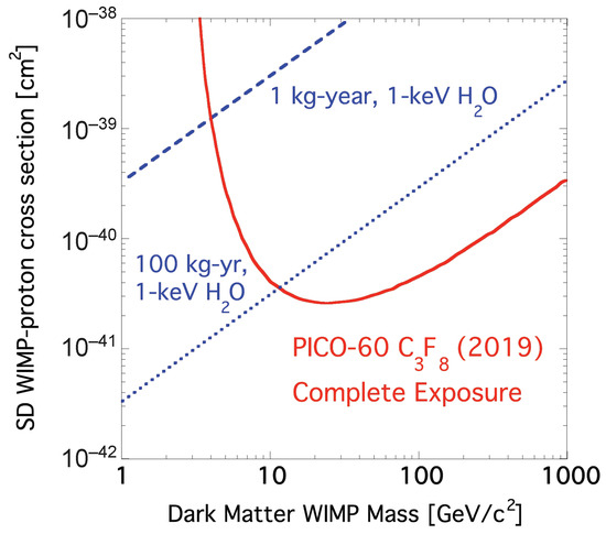 - Amole, C.; Ardid, M.; Arnquist, I.J.; Asner, D.M.; Baxter, D.; Behnke, E.; Bressler, M.; Broerman, B.; Cao, G.; Chen, C.J.; et al. Dark matter search results from the complete exposure of the PICO-60 C3F8 bubble chamber. Phys. Rev. D 2019, 100, 022001. [Google Scholar] [CrossRef]