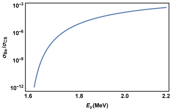 The ratio versus photon energy. The 7Be photo-dissociation cross-section is from Equation III.8 in [16]. The Compton scattering cross-section is given in Appendix (IV) in [10].