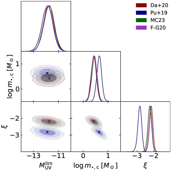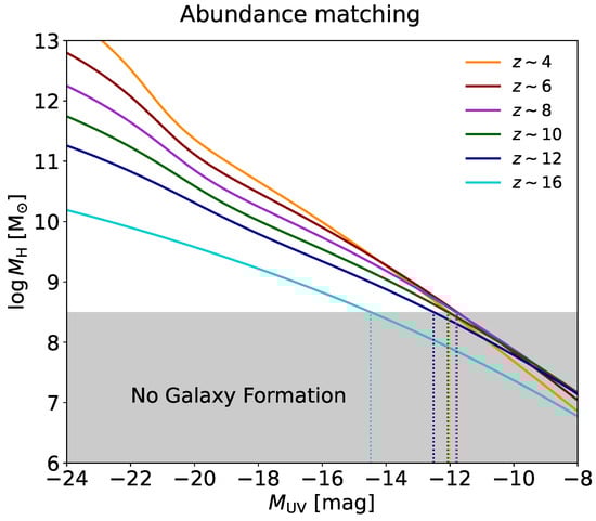 - Bouwens, R.J.; Oesch, P.A.; Stefanon, M.; Illingworth, G.; Labbé, I.; Reddy, N.; Atek, H.; Montes, M.; Naidu, R.; Nanayakkara, T.; et al. New Determinations of the UV Luminosity Functions from z 9 to 2 Show a Remarkable Consistency with Halo Growth and a Constant Star Formation Efficiency. Astron. J. 2021, 162, 47. [Google Scholar] [CrossRef]