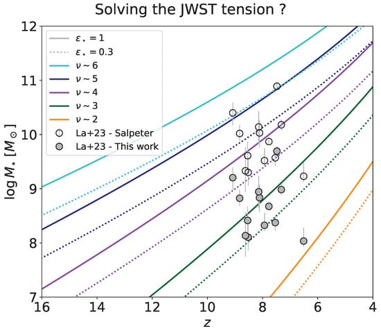 - Boylan-Kolchin, M. Stress testing ΛCDM with high-redshift galaxy candidates. Nature Astron. 2023, 7, 731. [Google Scholar] [CrossRef]