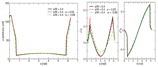 - Cruz-Osorio, A.; Lora-Clavijo, F.D. Non-axisymmetric relativistic wind accretion with velocity gradients on to a rotating black hole. Mon. Not. R. Astron. Soc. 2016, 460, 3193–3201. [Google Scholar] [CrossRef]