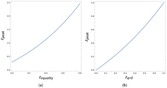 We could also try to estimate the epoch at the end of matter domination in a different way by considering the redshift at which the deceleration parameter crosses zero. From the Friedmann equations, we know that ; so, the condition for the zero deceleration parameter is . However, for our general matter model,