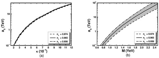 The minus sign results from the stabilization of (see Equation (10)) at zero and the minimization of the factor , which occurs for ; the decomposition of S is shown in Equation (10). We further assume that remains constant during FHI so that the simple one-field slow-roll approximation is valid. Possible variation in was investigated in Ref. [20], where they found that acceptable solutions with require a significant amount of tuning. The first term in Equation (21b) does not play an essential role in our set-up due to low enough s— cf. Ref. [19].