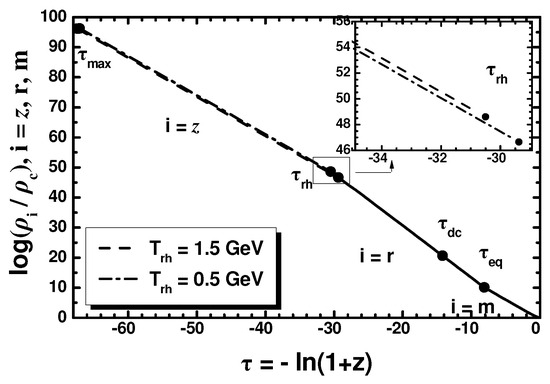 - Giudice, G.F.; Kolb, E.W.; Riotto, A. Largest temperature of the radiation era and its cosmological implications. Phys. Rev. D 2001, 64, 023508. [Google Scholar] [CrossRef]