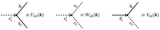 The interaction part in (16) gives rise to three interaction vertices: , and , depicted in Figure 2, where