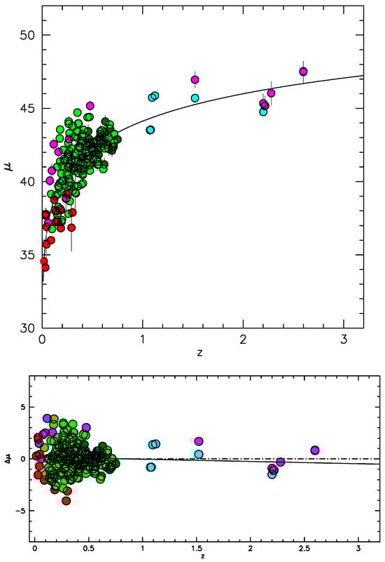 The most well-known is the Faber–Jackson (FJ) relation, which is the correlation observed between the luminosity L of galaxies and the velocity dispersion (of stars). The history of this correlation is very long and cannot be reported here. In brief, the first papers were by Minkowski [] (who used a sample of 13 ETGs), and Morton and Chevalier [] a decade later. The relation took the power law form , that we all know only with the work of Faber and Jackson [] (who used a sample of 25 ETGs), and since then it is commonly known as the FJ relation, customarily expressed as , where and take suitable values that depend on the available observational data. It is worth recalling here that the usual FJ relation refers to galaxies (ETGs) of the Local Universe, therefore, old objects at redshift zero, unless otherwise specified. In other words, it is a picture of the present day situation. No temporal effects due to the ever-changing physical content of a galaxy are included. Finally, the FJ relation is a projection of the Fundamental Plane in the multidimensional space of the luminosity L, the mass M (usually the stellar mass), the radius R (usually the half-light or half-mass radius ), the specific intensity , and the velocity dispersion (see a recent discussion by []).
