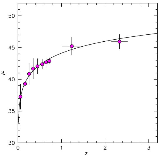 The self similarity of the xA spectra permits an easy identification of these sources up to z∼, making the relation of quasars a powerful cosmological probe [,,]. xA quasars satisfy three conditions: (1) a constant Eddington ratio , close to the Eddington limit; (2) the assumption of virial motions for the low-ionization BLR, so that the black hole mass can be expressed by a virial relation; and (3) the spectral invariance. For xA the ionization parameter U can be written as [], where is the number of hydrogen ionizing photons. U has to be approximately constant, otherwise we should observe a significant change in the spectral appearance. The three constraints make it possible to derive a relation between the line width (the FWHM of the H broad component is expressed in units of 1000 km s−1) and luminosity: