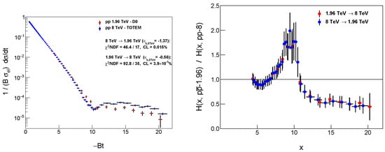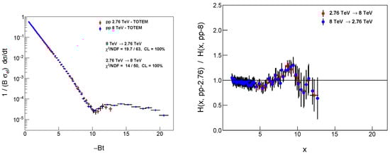 9] as published in final form in July 2021, but limited the comparison to the diffractive minimum and maximum region in the four-momentum transfer range, to the verified domain of validity of the ReBB model. More recently, these results were extended to the new TOTEM data on elastic