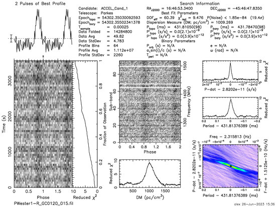 - Ransom, S. PRESTO: PulsaR Exploration and Search TOolkit. Astrophysics Source Code Library. ascl: 1107.017. 2011. Available online: https://ui.adsabs.harvard.edu/abs/2011ascl.soft07017R%2F/abstract (accessed on 19 August 2023).