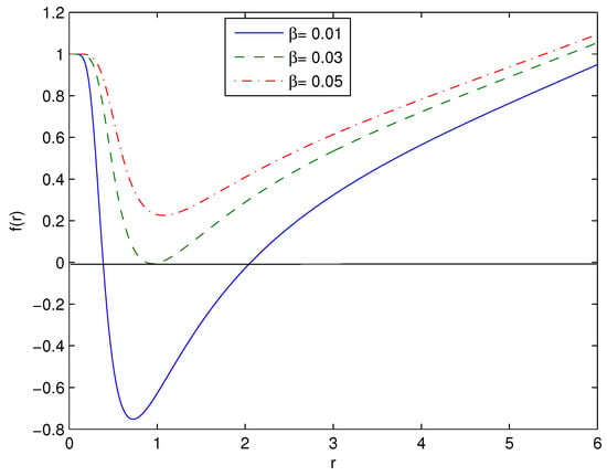 The function at , , , and . Figure 1 shows that black holes could have one or two horizons.