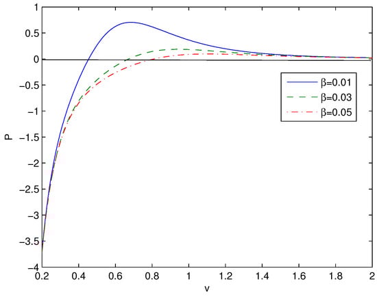 As , Equation (25) becomes EoS of charged Maxwell-AdS black hole []. If the specific volume is defined as () [], Equation (25) is similar to the van der Waals EoS. Replacing into Equation (25) one finds