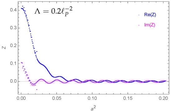 Figure 19. Here, we show real and imaginary parts of the spin foam partition function. The oscillations of the imaginary part are of the same magnitude as the oscillations of the real part, starting with quite small values of the scale factor (squared).