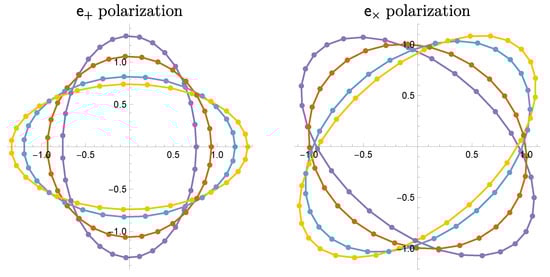 then in the absence of the source, Equation (12) implies , with a plane-wave solution . If we suppose that the perturbations propagate along the z direction, then we have two independent polarization tensors, , each of which takes a particular simple form: