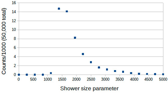 As Figure 11, with the shower size threshold increased to 7000 particles.