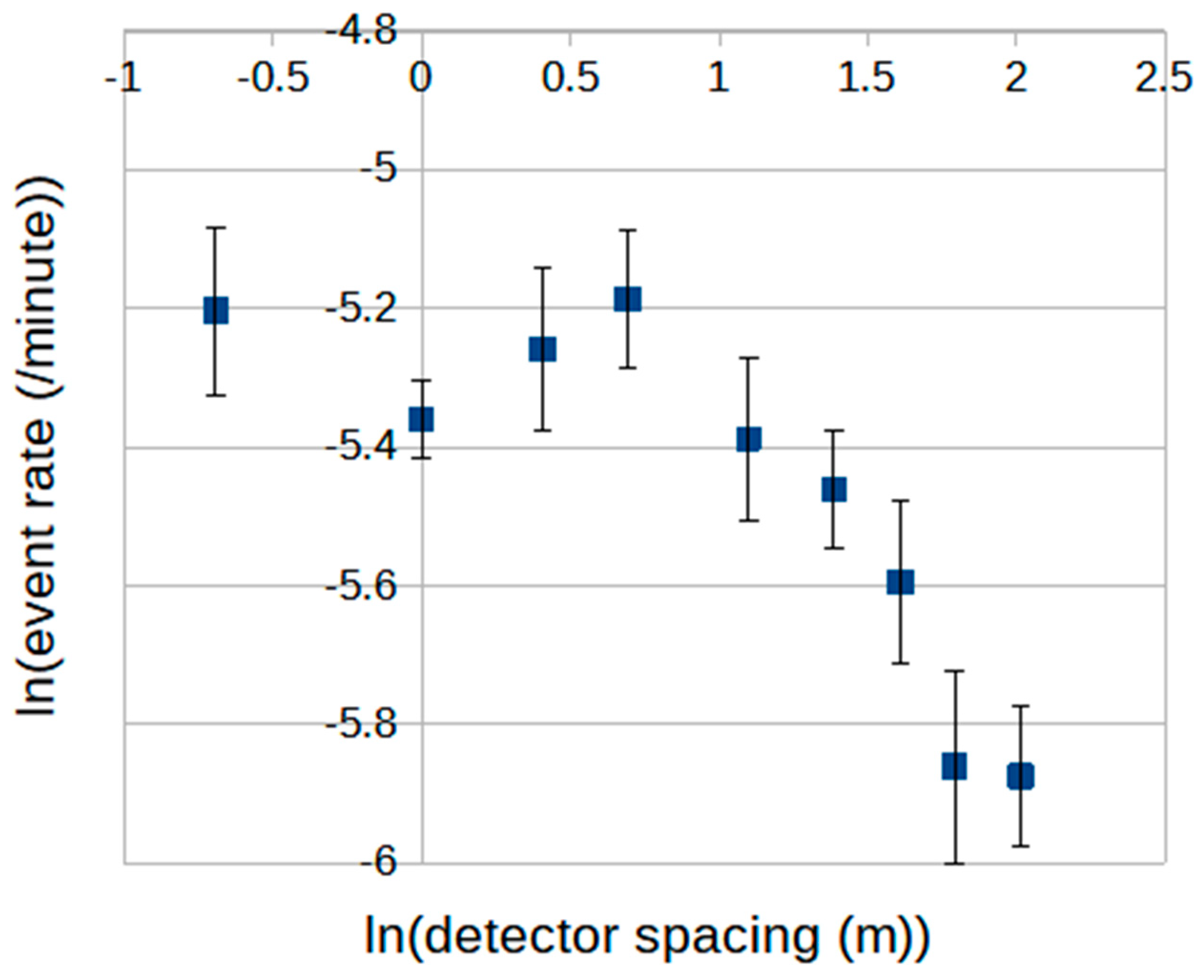 3.4. An Examination of the Statistical Correlation of Signals Recorded with an Array Trigger When Two Detectors Are Placed Together