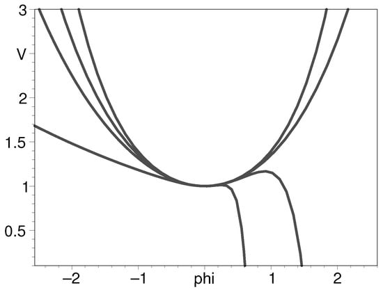 outside the wormhole throat. We find that it is indeed the case when and . Therefore, in this sense, the wormhole is stable to metric perturbations except for . In Figure 1, we plot the effective potential in terms of r. The potential is positive everywhere and tends to zero at both infinity and the throat when . As a comparison, a potential well appears for and , which implies the instability of wormholes to metric perturbations in this situation.