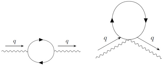 However, using the limit, we easily see that the graphs with insertions of non-standard QED vertices, shown in Figure 5, Figure 6 and Figure 7, vanish. In fact, Figure 5 contains two outside the integral. symmetry means that there are two inside the integral. That is, the integral is proportional to . The same argument shows that Figure 6 and Figure 7 vanish.