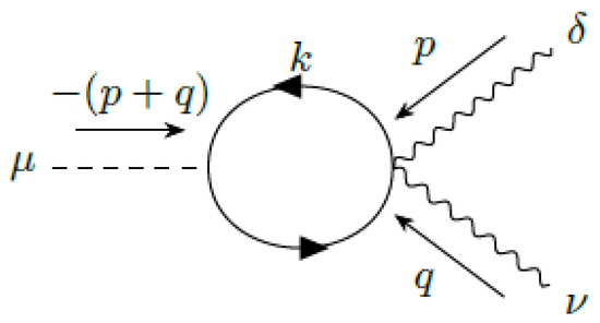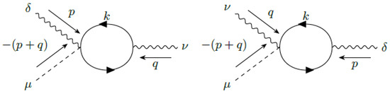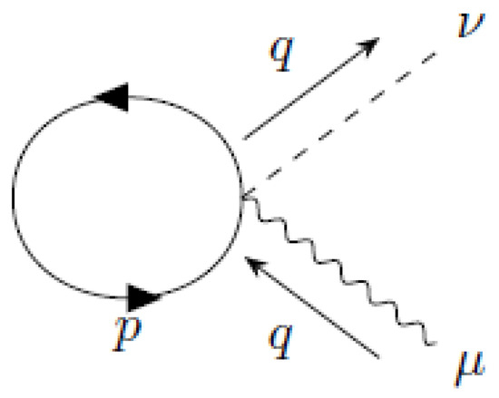 The contribution to the two-dimensional axial vector current in VSR electrodynamics is given by the two graphs (Figure 2 and Figure 3):