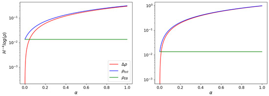 Finally, Figure 12 and Figure 13 present the behavior for a scale-invariant magnetic field. Here, does not contribute to the energy total density.