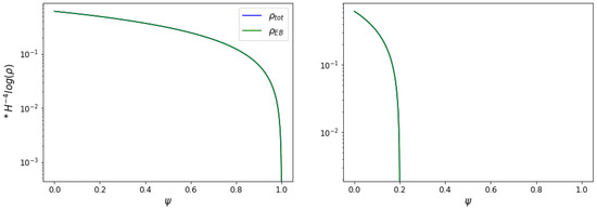 Figure 7 shows the similarity between (green line) and (blue line), yielding a negligible value of to avoid increased energy on inflation. The curve with falls rapidly for , because energy densities run into the forbidden region.