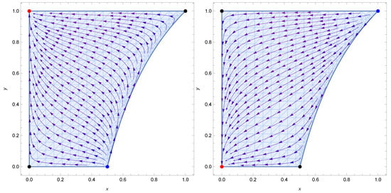 In cosmological models coupled with NLED, particularly in the context of the early universe, the analysis often focuses solely on magnetic fields, setting the electric field to zero (). This simplification stems from several compelling reasons. Firstly, the early universe’s hot, dense plasma environment favors magnetic fields due to magnetohydrodynamic effects and their energy density scaling with compared to []. Secondly, limiting the analysis to magnetic fields reduces the complexity of the dynamical equations. Thirdly, NLED can give rise to intriguing magnetic phenomena, such as magnetic monopoles or the self-organization of magnetic structures, making magnetic fields a central focus for understanding these phenomena and their potential cosmological implications. Finally, in many cosmological scenarios, the effects of the electric field are negligible compared to those of magnetic fields, particularly in the early universe. This approach, commonly referred to as studying magnetic universes (MUs), enables the investigation of the specific effects of NLED on magnetic phenomena in the early universe while maintaining a manageable analytical framework [,,,,]. Thus,