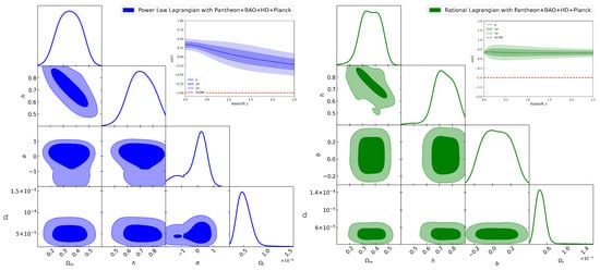 have been proposed to elucidate the late-time accelerated expansion of MUs []. Additionally, combinations of positive and negative powers of F have been investigated [,,], as exemplified by