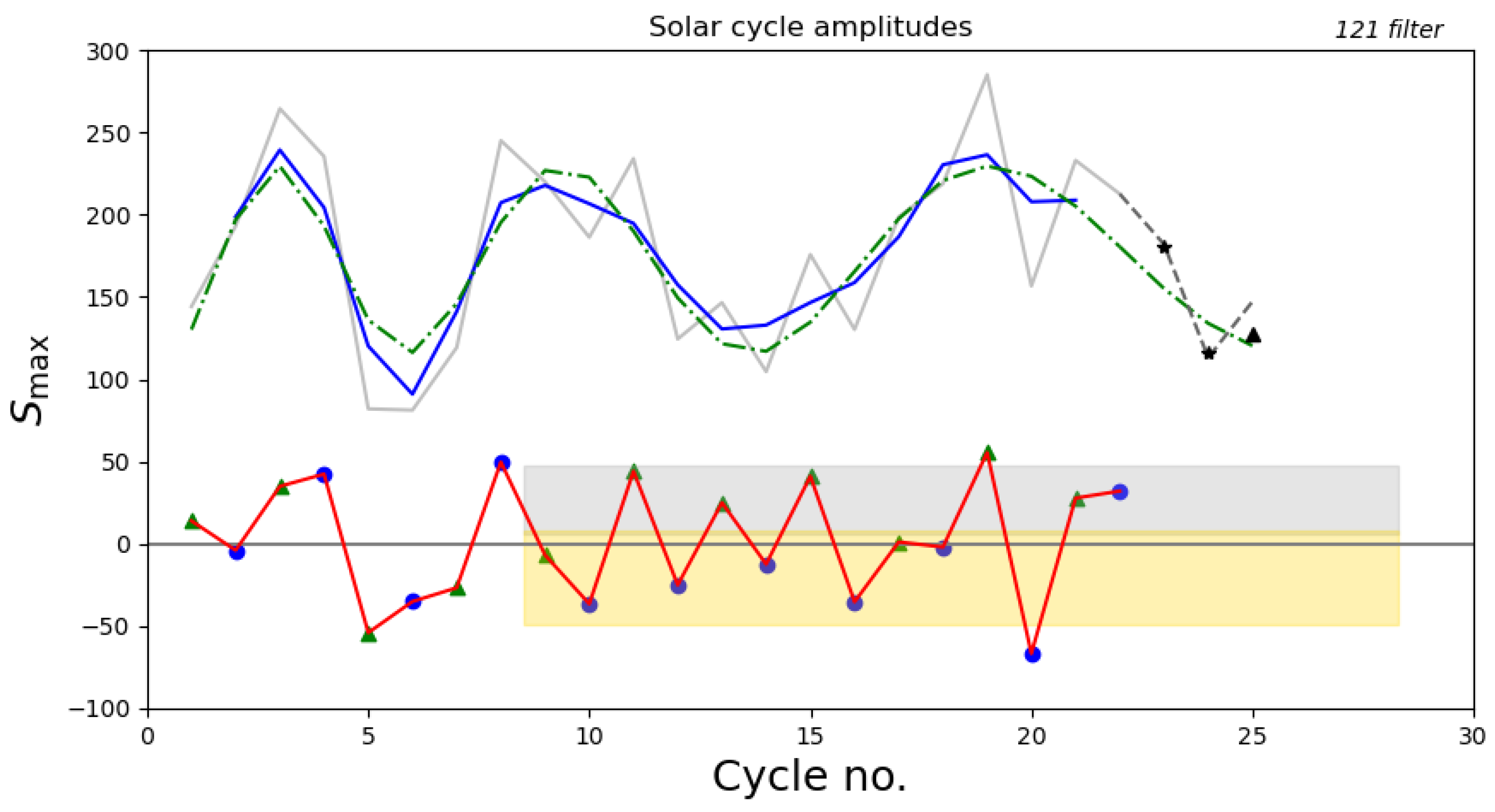 - Asikainen, T.; Mantere, J. Prediction of even and odd sunspot cycles. J. Space Weather Space Clim. 2023, 13, 25. [Google Scholar] [CrossRef]