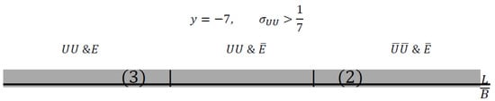 Considering the special case , , in Figure 6, all permitted areas for physical parameters are absent for the case. Moreover, for all values of the ratio, an overproduction of techniparticles can be observed.