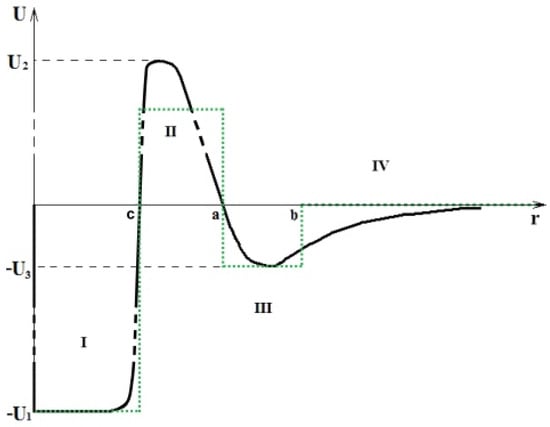 Section 4.2 delves into the challenges posed by the potential strong interaction of XHe atoms with matter nuclei, which could disrupt the bound state of dark atoms and lead to the formation of anomalous isotopes, the abundance of which in the environment is subject to strict experimental constraints []. To solve this problem, the XHe hypothesis assumes the existence of a dipole Coulomb barrier in the effective interaction potential of a dark atom with a nucleus, preventing the fusion of the and X particles that make up the dark atom with the nuclei of matter. This condition is vital for the existence of the X-helium hypothesis. Given the complexity of this three-body problem, an exact analytical solution is not available, necessitating the development of a numerical approach to validate the proposed scenario.