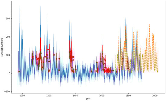 - Travaglini, G. Bayesian Methods for Reconstructing Sunspot Numbers Before and During the Maunder Minimum. Sol. Phys. 2017, 292, 23. [Google Scholar] [CrossRef]