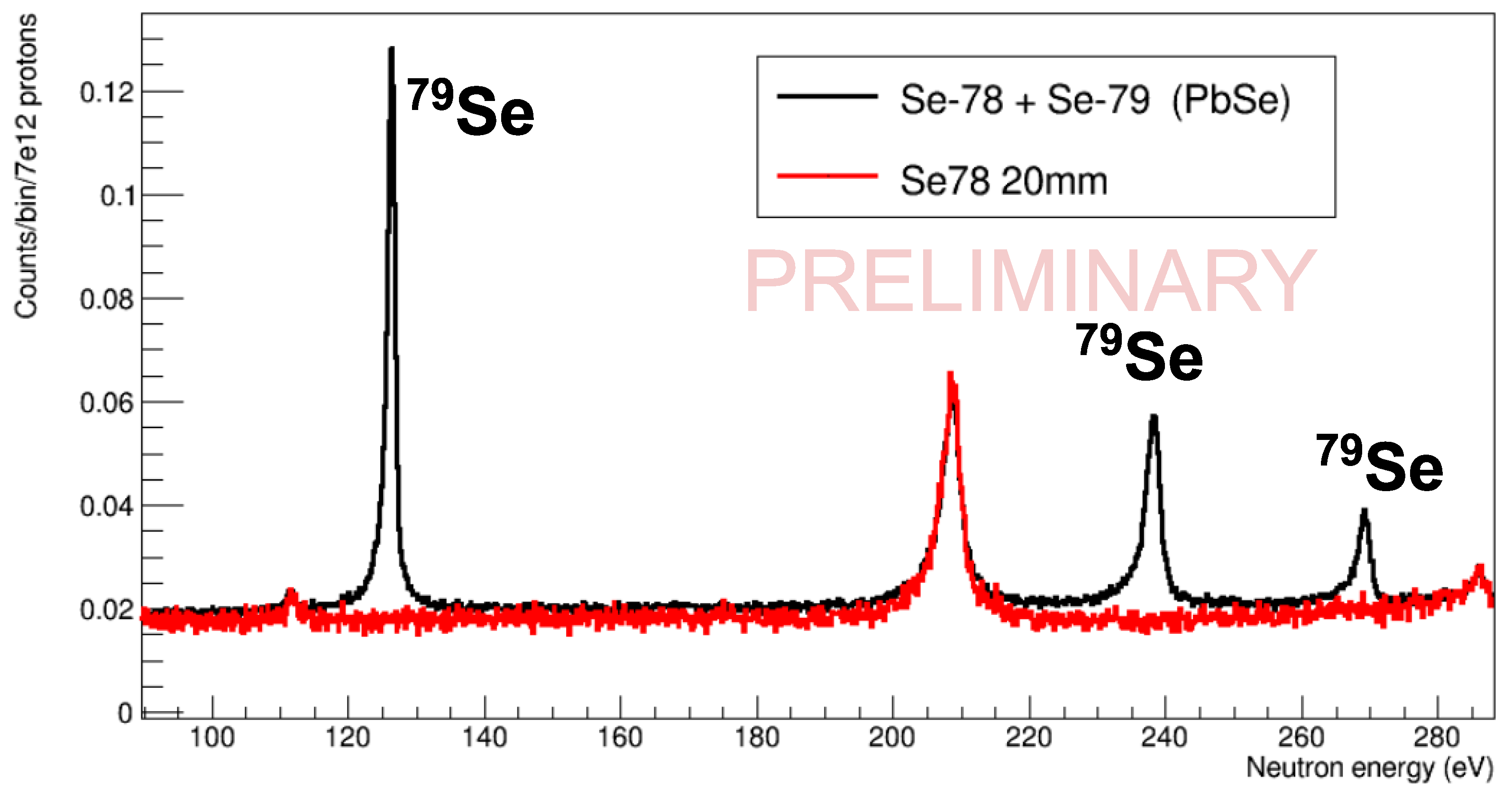 | 77Se | s-process nucleosynthesis in massive stars | 0–51 keV | C6D6 | [37] |