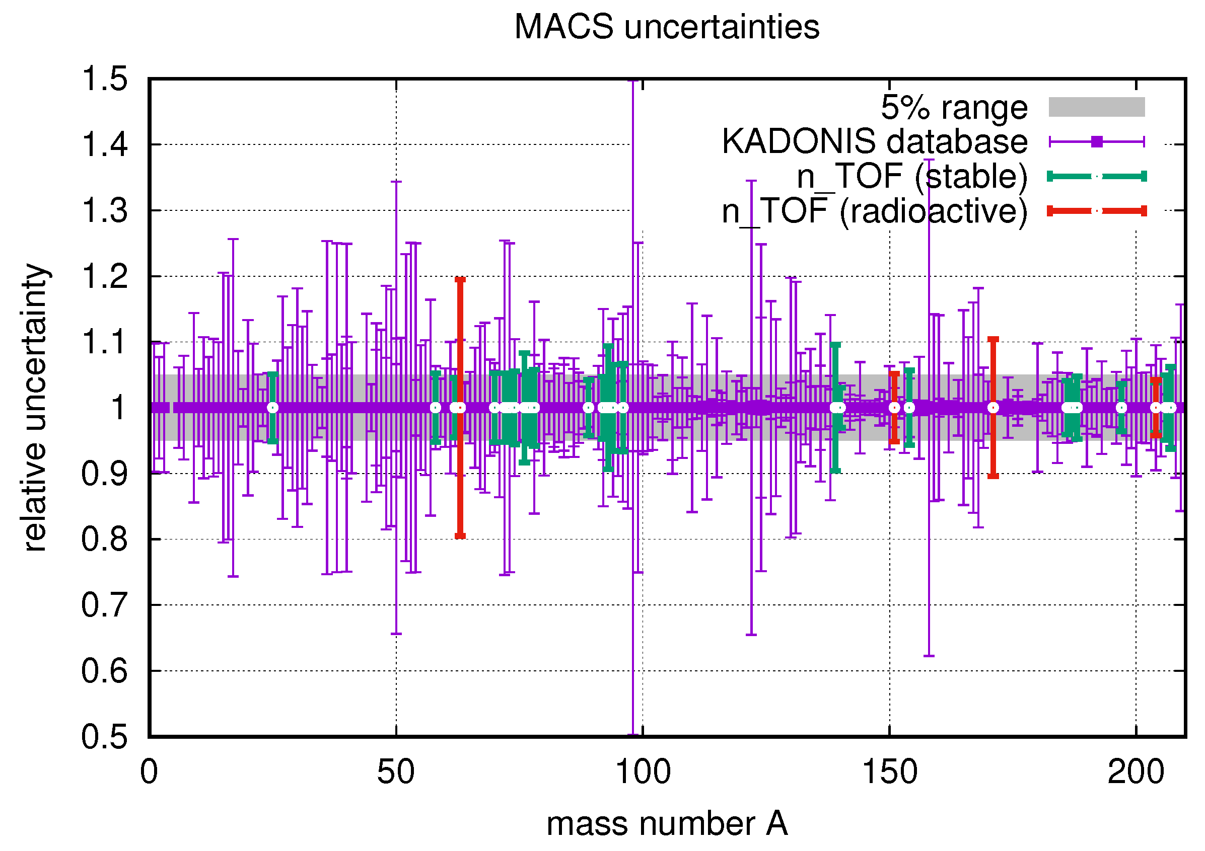 - Possibility to measure gaseous samplesThanks to an in-house developed gas cell that can resist the pressure of hundreds of bar, a gas target, namely, 40Ar, was used for the first time in 2024 at n_TOF. Given that nucleosynthesis processes involving noble gases (Ne, Ar and Kr) take place for from few to hundreds keV, depending on the stellar conditions [124], new neutron capture measurements can be scheduled in the near future.An opportunity to work with liquid target will be definitely exploited too.