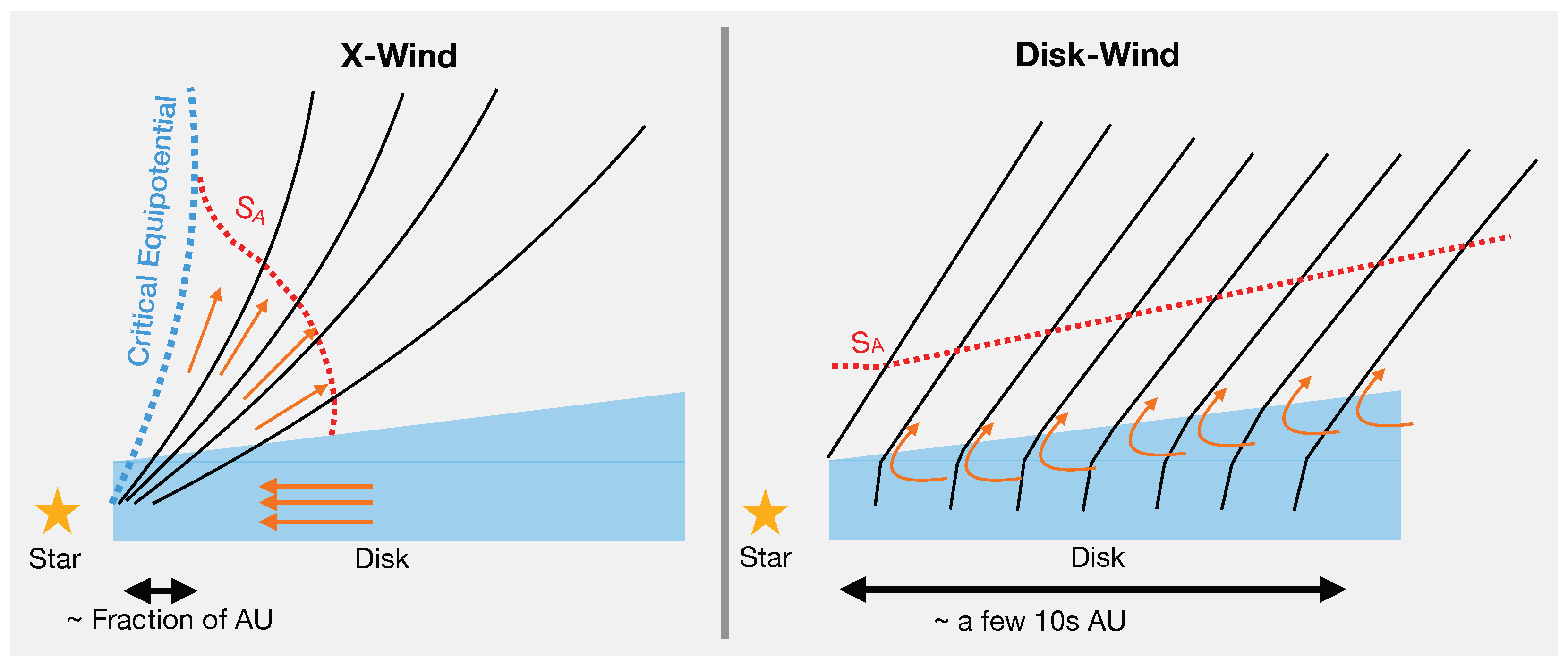 - Shu, F.H.; Najita, J.R.; Shang, H.; Li, Z.Y. X-Winds Theory and Observations. In Protostars and Planets IV; Mannings, V., Boss, A.P., Russell, S.S., Eds.; University of Arizona Press: Tucson, AZ, USA, 2000; pp. 789–814. [Google Scholar]