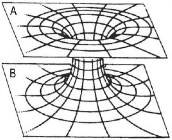 Similarly, wormholes can be traced back to early contributions by Flamm in 1916 [20,21], by Einstein and Rosen in 1935 [22] (the “Einstein–Rosen bridge”), and by Wheeler in 1955 [23] (“spacetime foam”).1