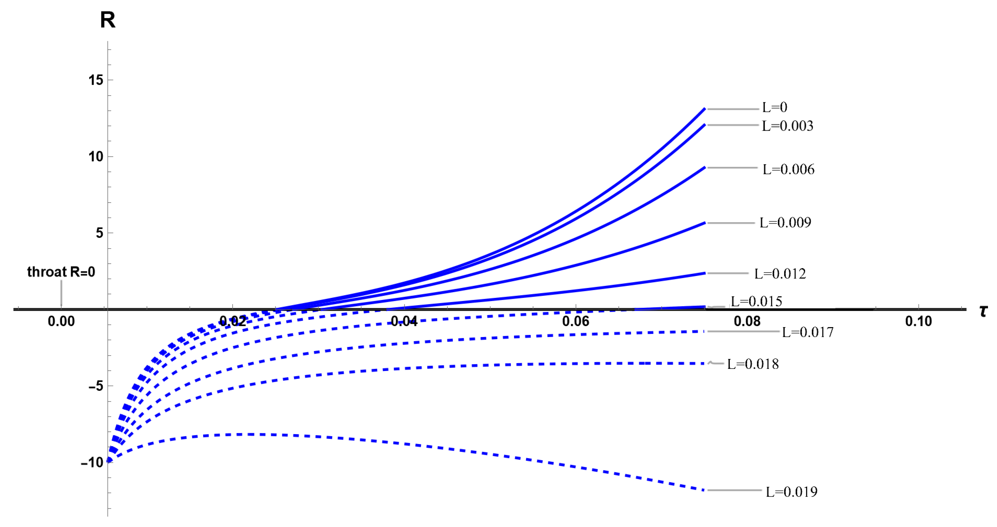 - Bronnikov, K.A.; Kashargin, P.E.; Sushkov, S.V. Possible wormholes in a Friedmann universe. Universe 2023, 9, 465. [Google Scholar] [CrossRef]