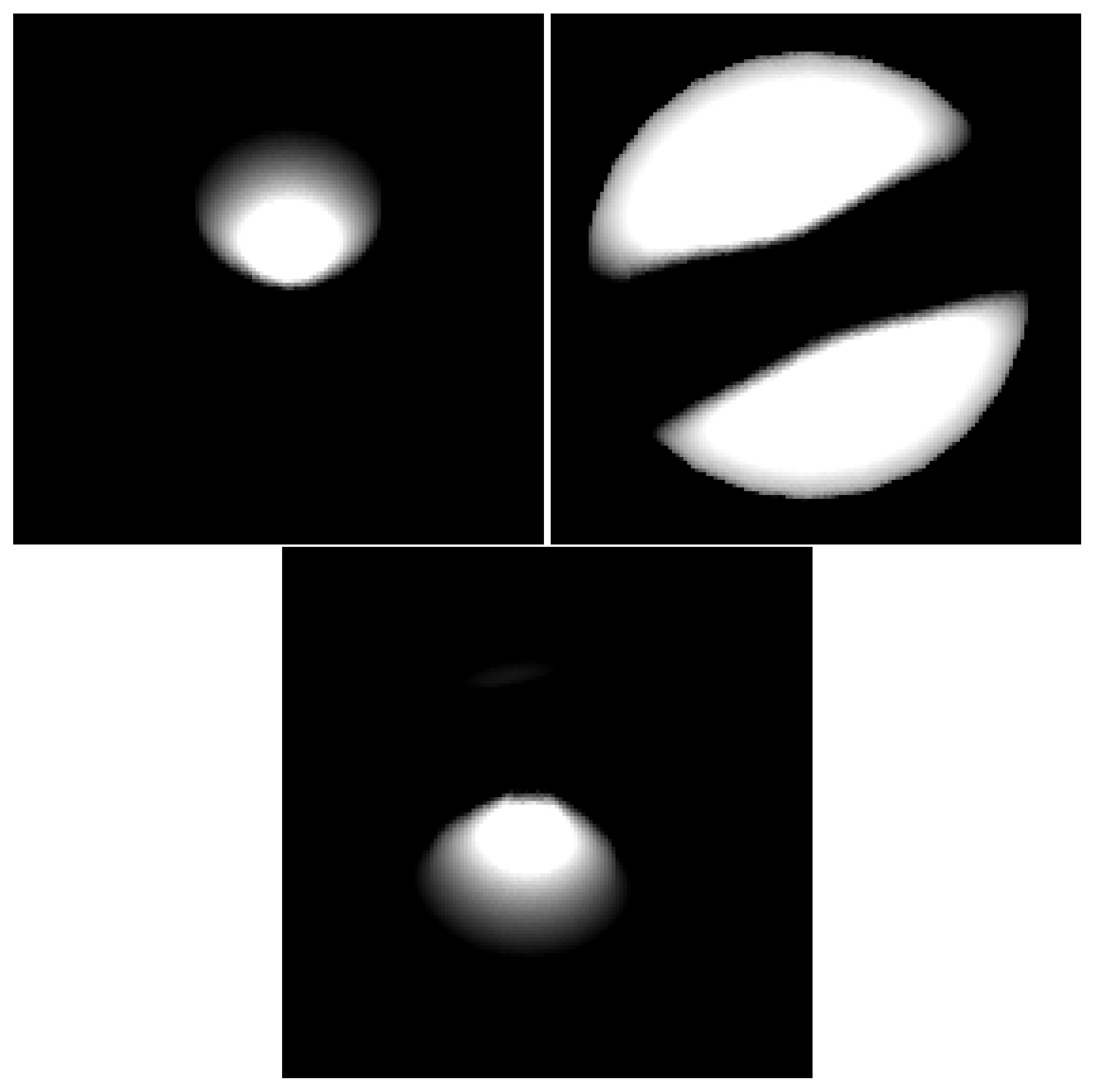 Figure 4 shows simulated images of the scattered radiation from the corona at 35-day phase 0.0, when the line-of-sight from neutron star to observer gives maximum visibility at peak of Main High; at 35-day phase 0.35, in the middle of the first Low State, when the disk maximally blocks the line-of-sight from neutron star to observer; and 0.52, when the line-of-sight from neutron star to observer gives the maximum visibility at peak of Short High (but less than that for Main High). For phase 0.0 the part of the corona above the disk is visible, whereas for phase 0.52 the corona below the disk is visible and during the two low states both sides of the corona are visible, but the central part of the corona is blocked by the disk.