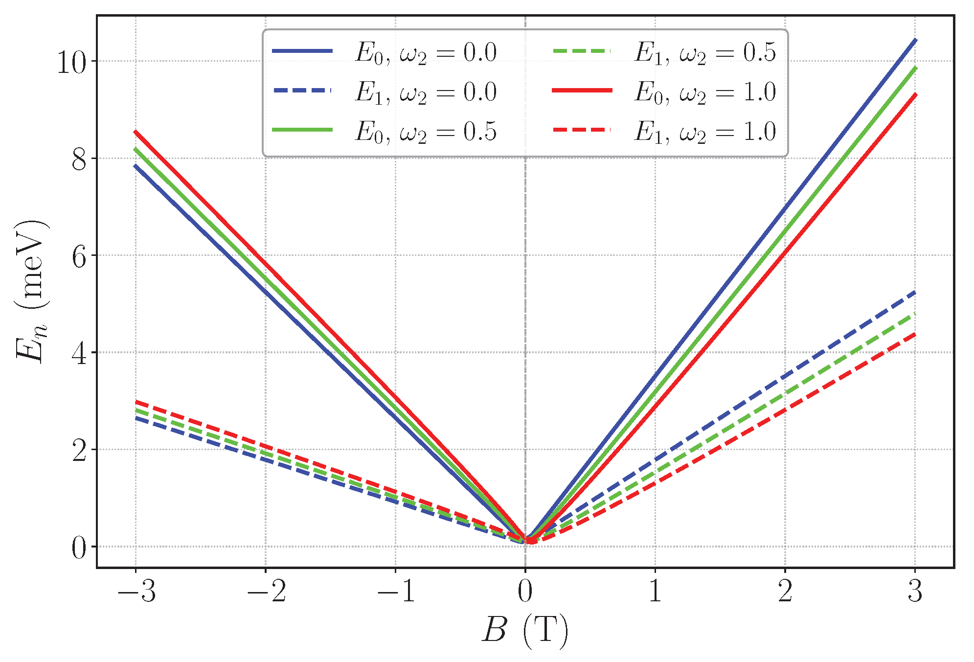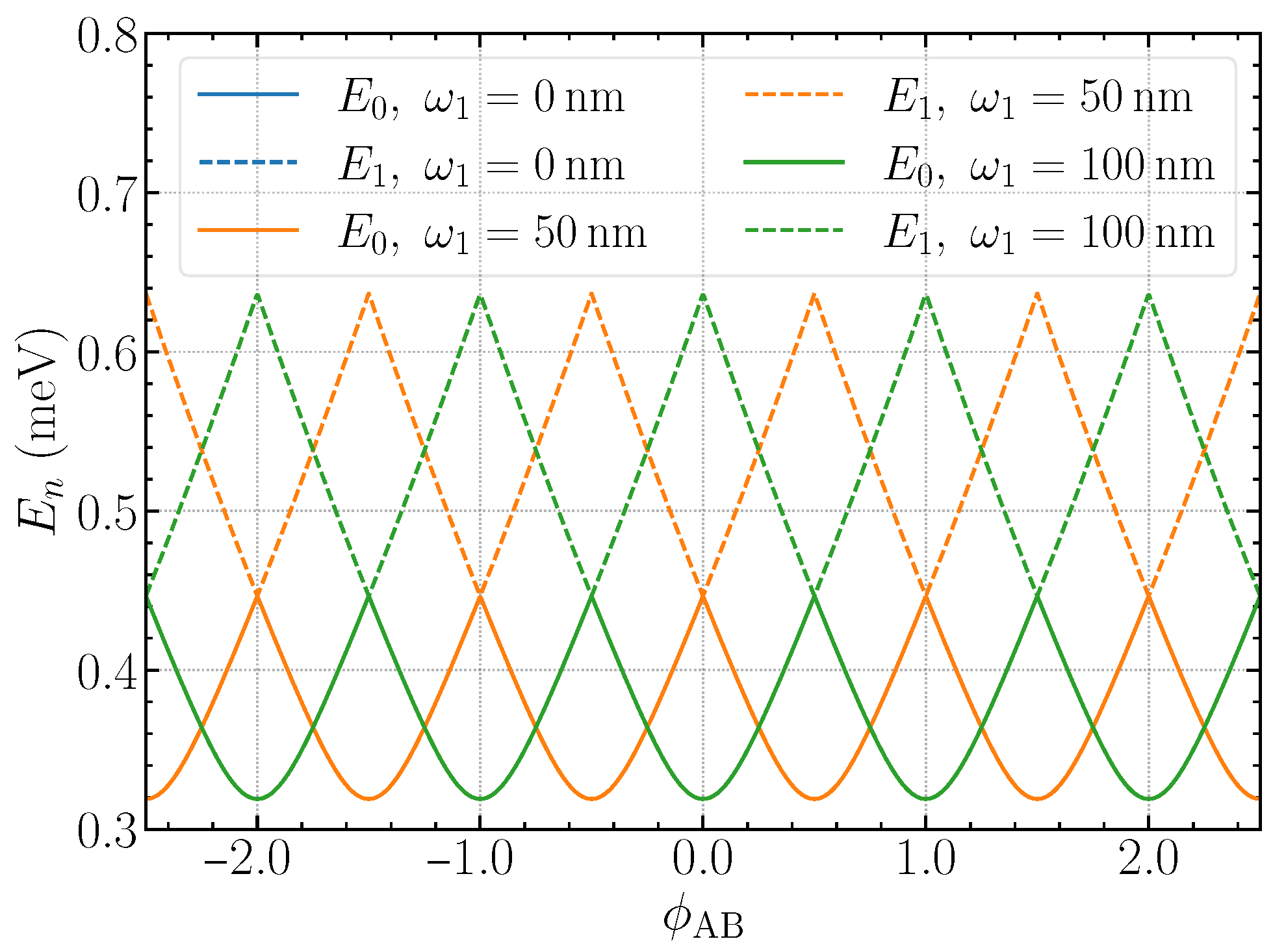 The parameter dependence is transparent in those expressions: the global screw acts as an AB-like reindexing ; the local twist generates the r-dependent mixing that couples azimuthal and axial transport; a uniform field enters only through , adding the Landau term ; and the AB flux shifts , leading to the standard periodicity in at fixed values of the other controls.
