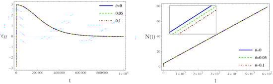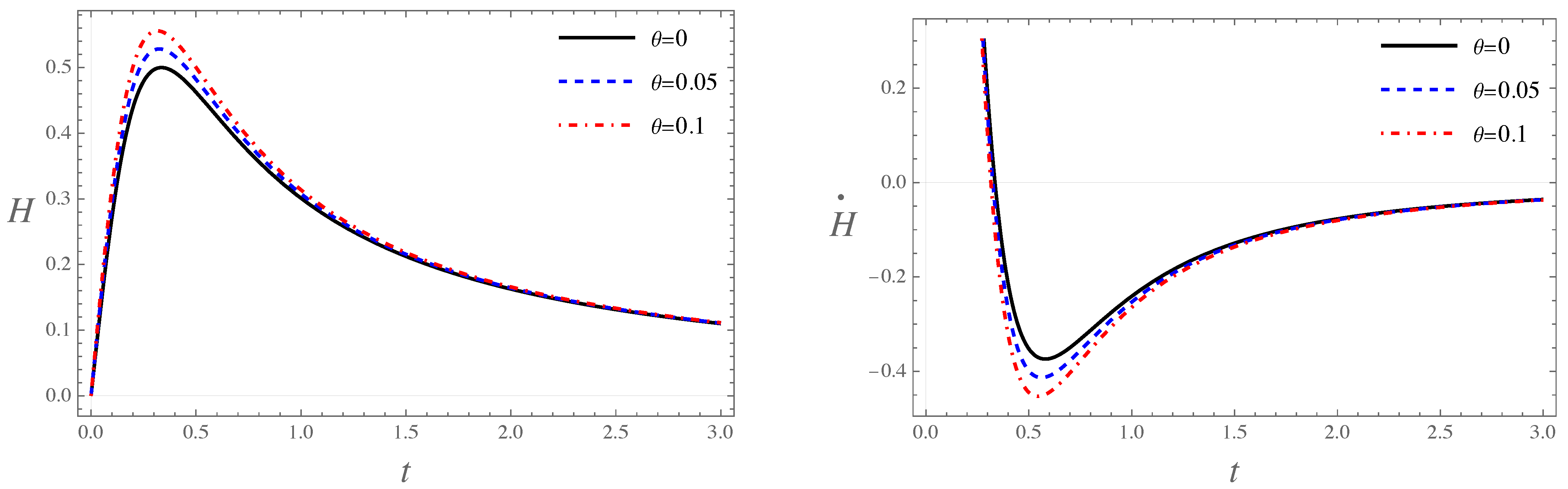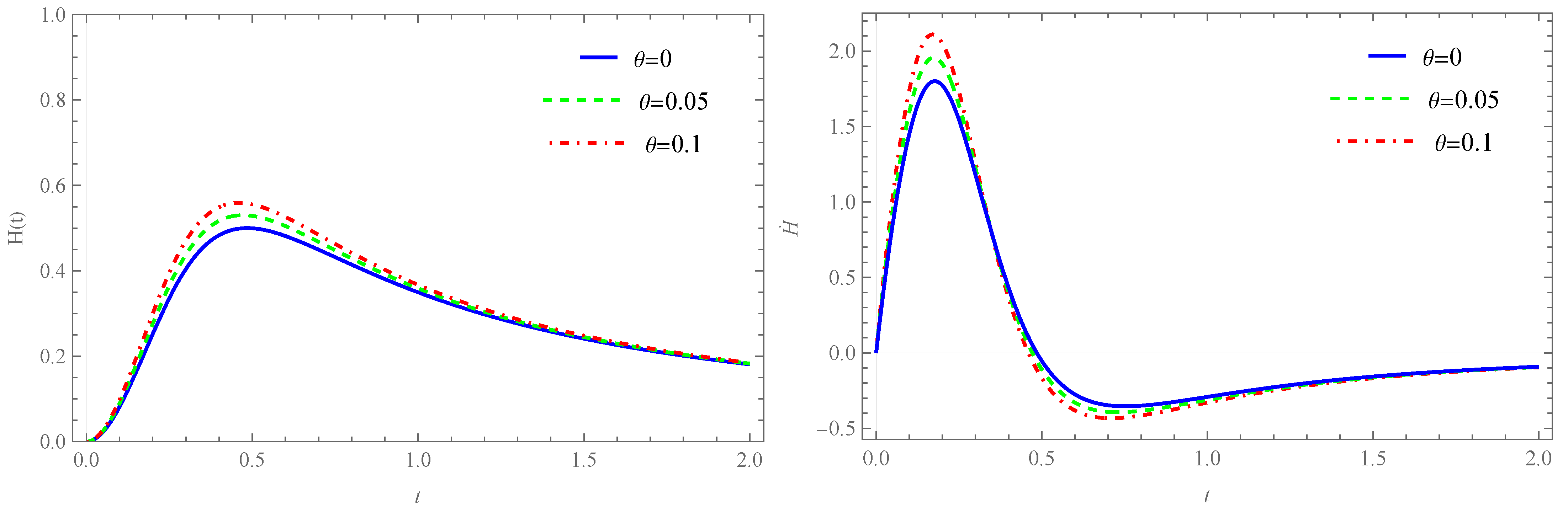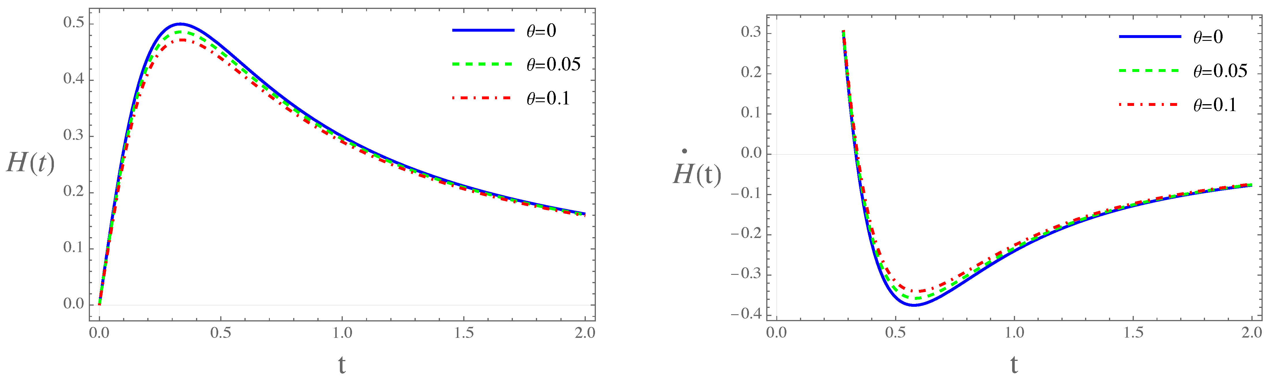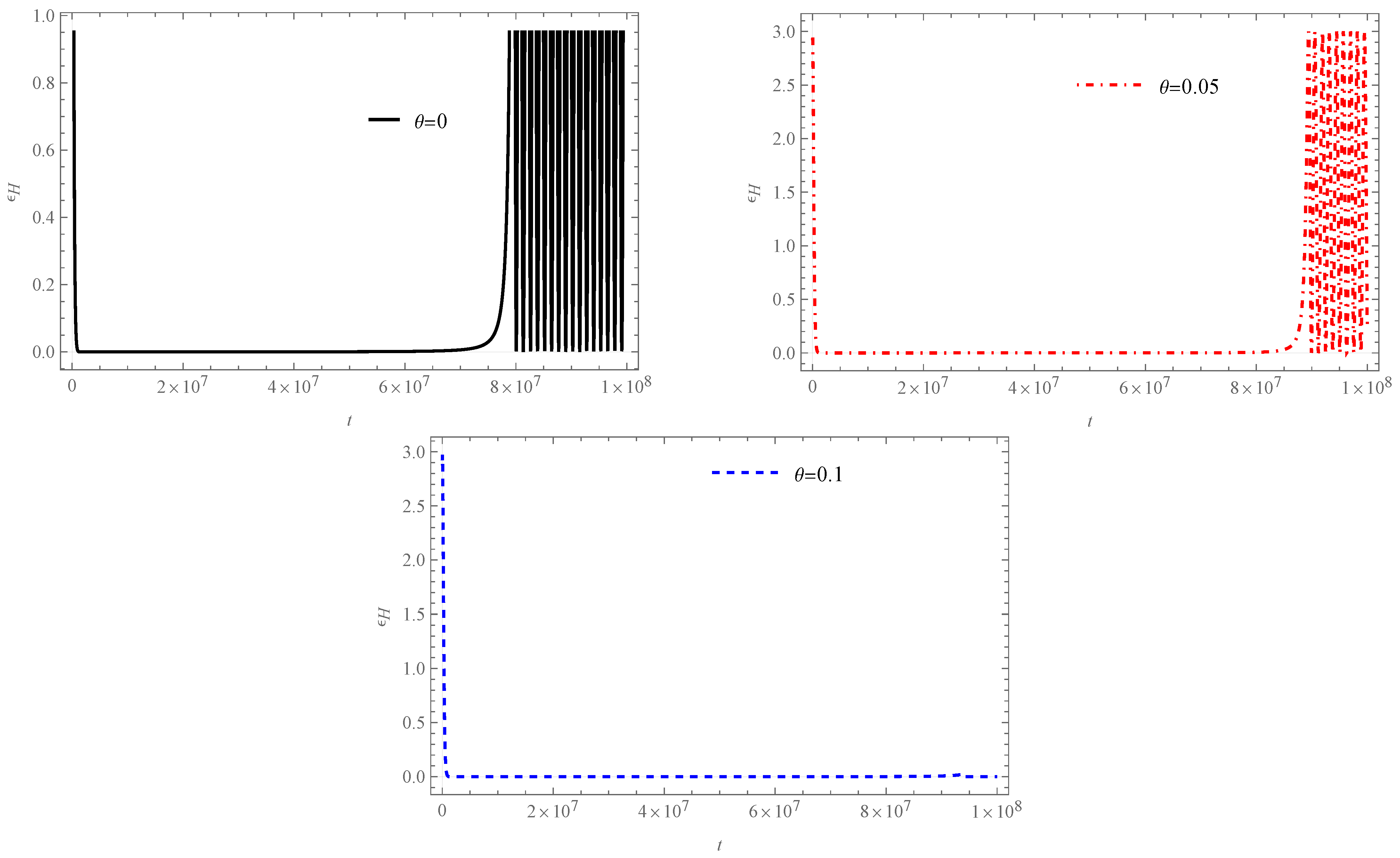 - Malekolkalami, B.; Atazadeh, K.; Vakili, B. Late time acceleration in a non-commutative model of modified cosmology. Phys. Lett. B 2014, 739, 400–404. [Google Scholar] [CrossRef]