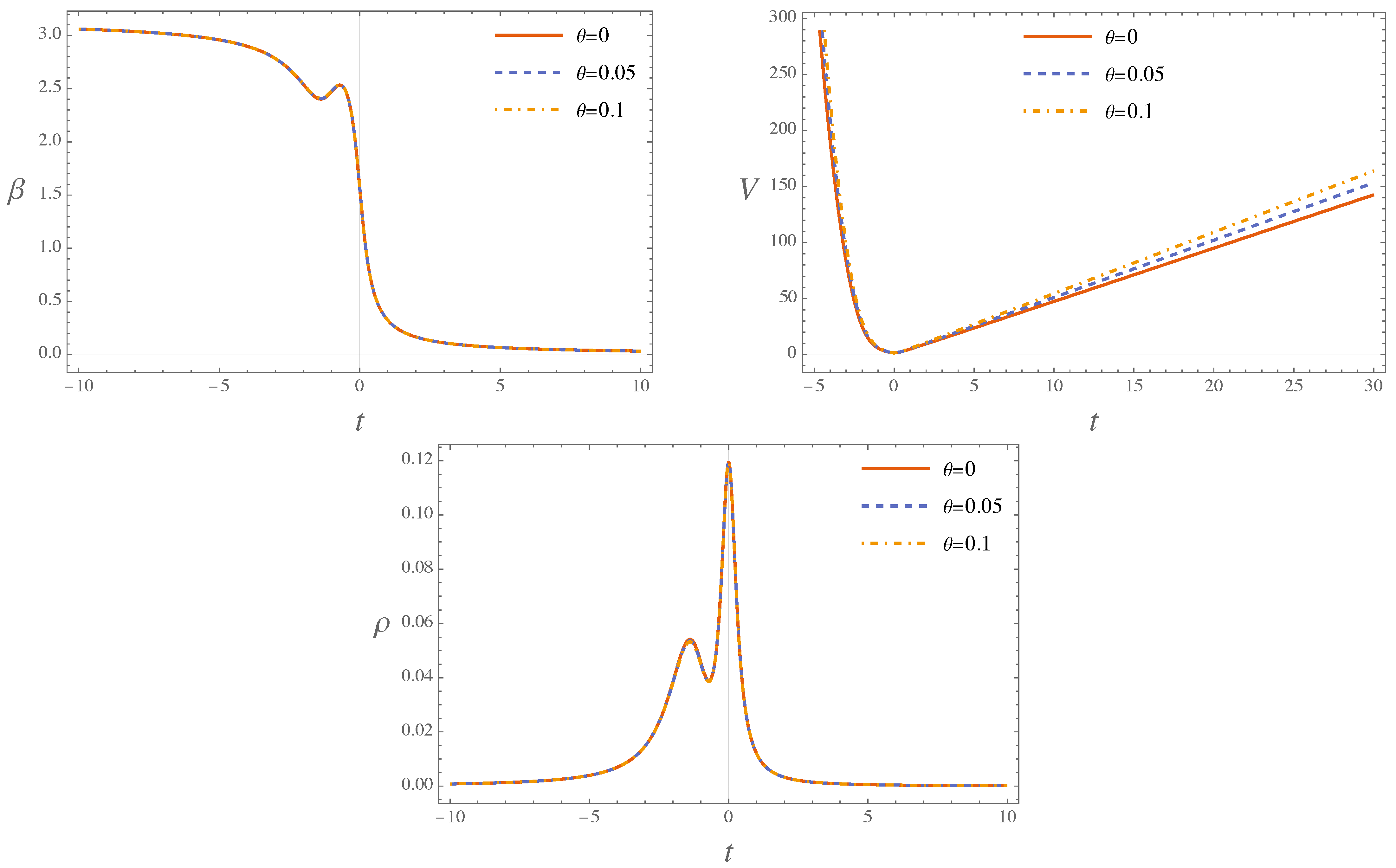 - Díaz-Barrón, L.R.; Espinoza-García, A.; Pérez-Payán, S.; Socorro, J. Noncommutative Friedmann Equations in Effective LQC. Int. J. Mod. Phys. D 2020, 29, 2050039. [Google Scholar] [CrossRef]