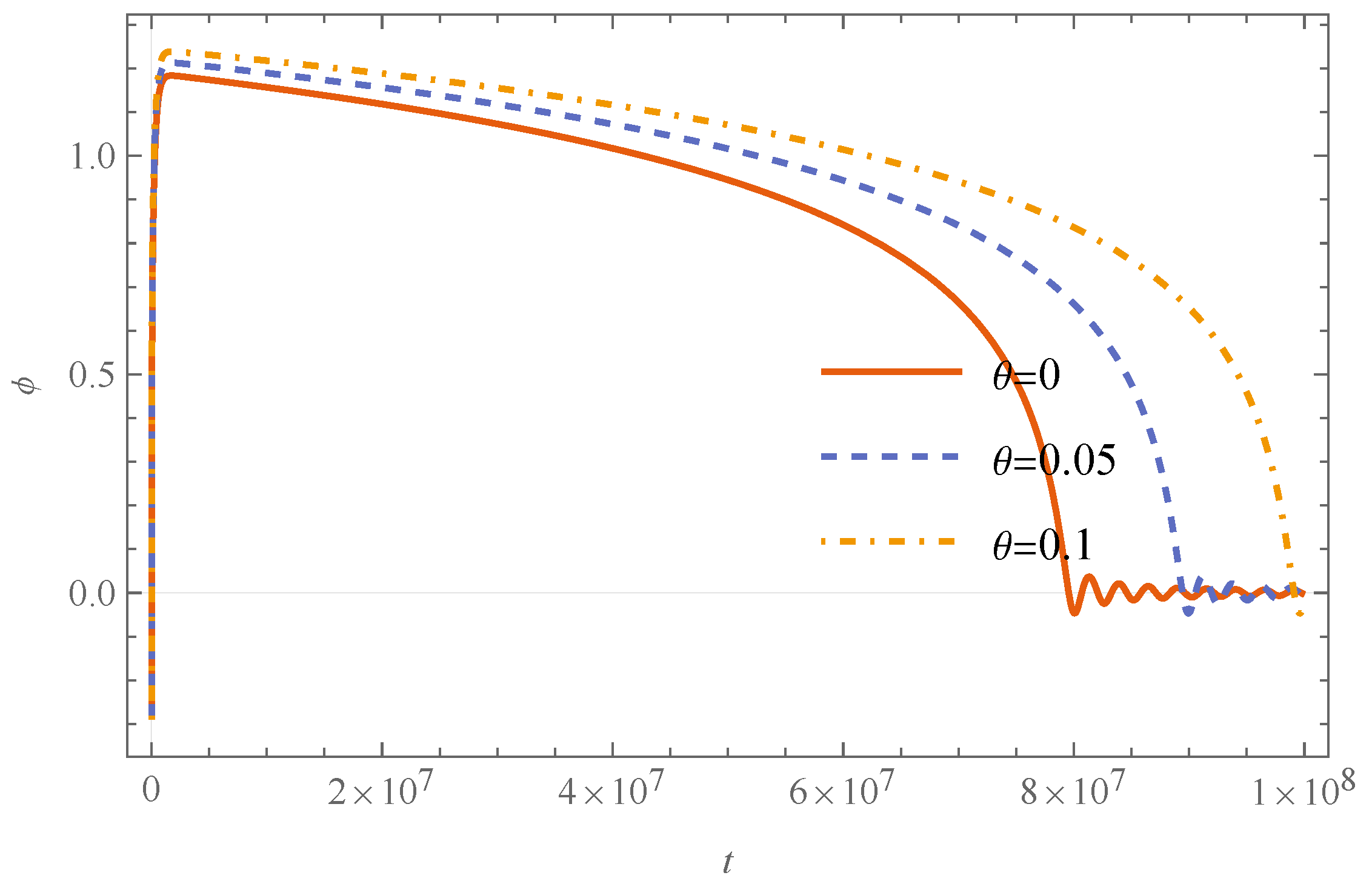 - Perez-Payan, S.; Sabido, M.; Mena, E.; Yee-Romero, C. Analysis of Scalar Field Cosmology with Phase Space Deformations. Adv. High Energy Phys. 2014, 2014, 958137. [Google Scholar] [CrossRef]