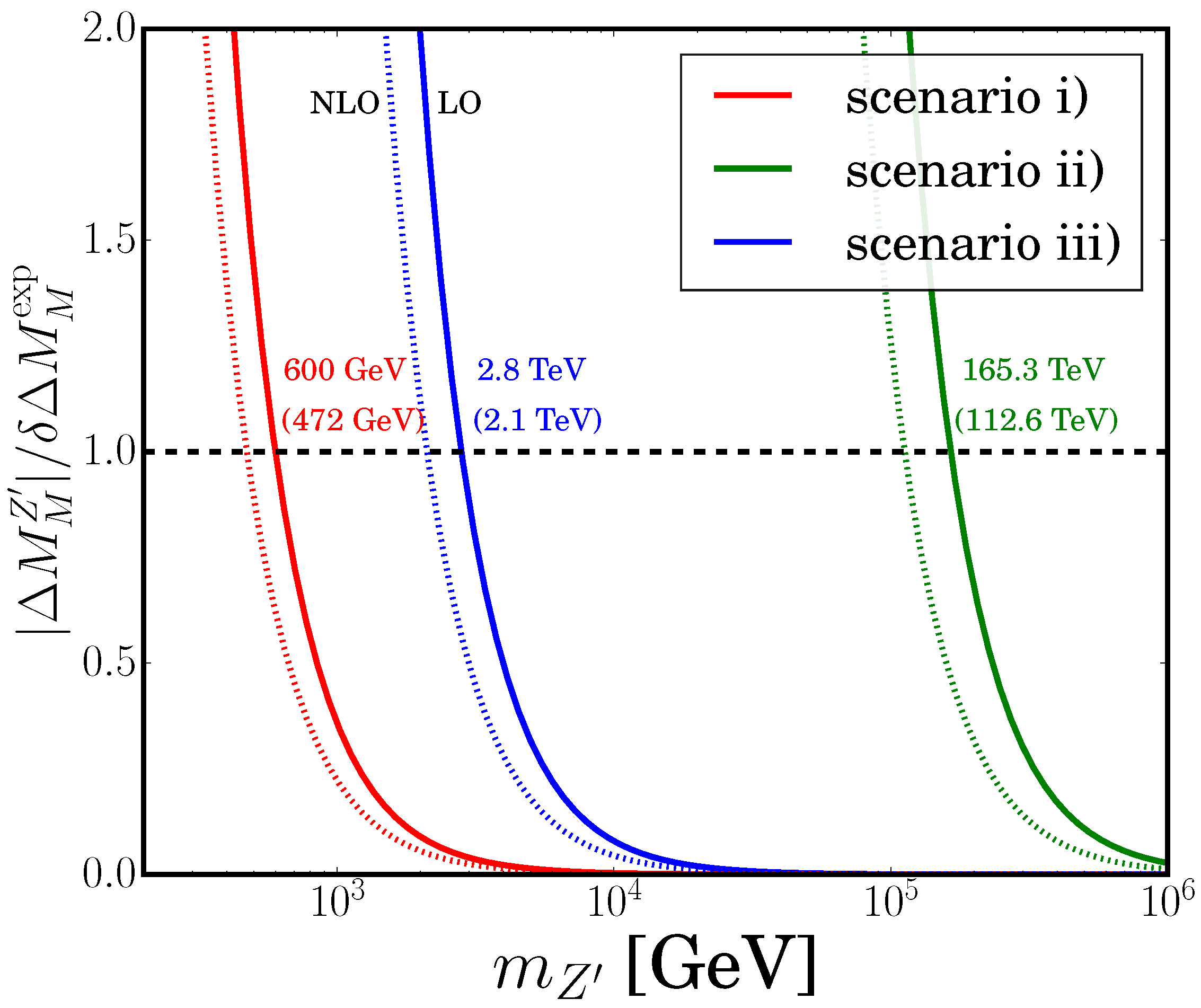Scenario (ii) (, ): FCNC processes occur exclusively in the down-quark sector, being constrained by K, , and transitions. The precision measurement of mixing makes this the most restrictive scenario.
