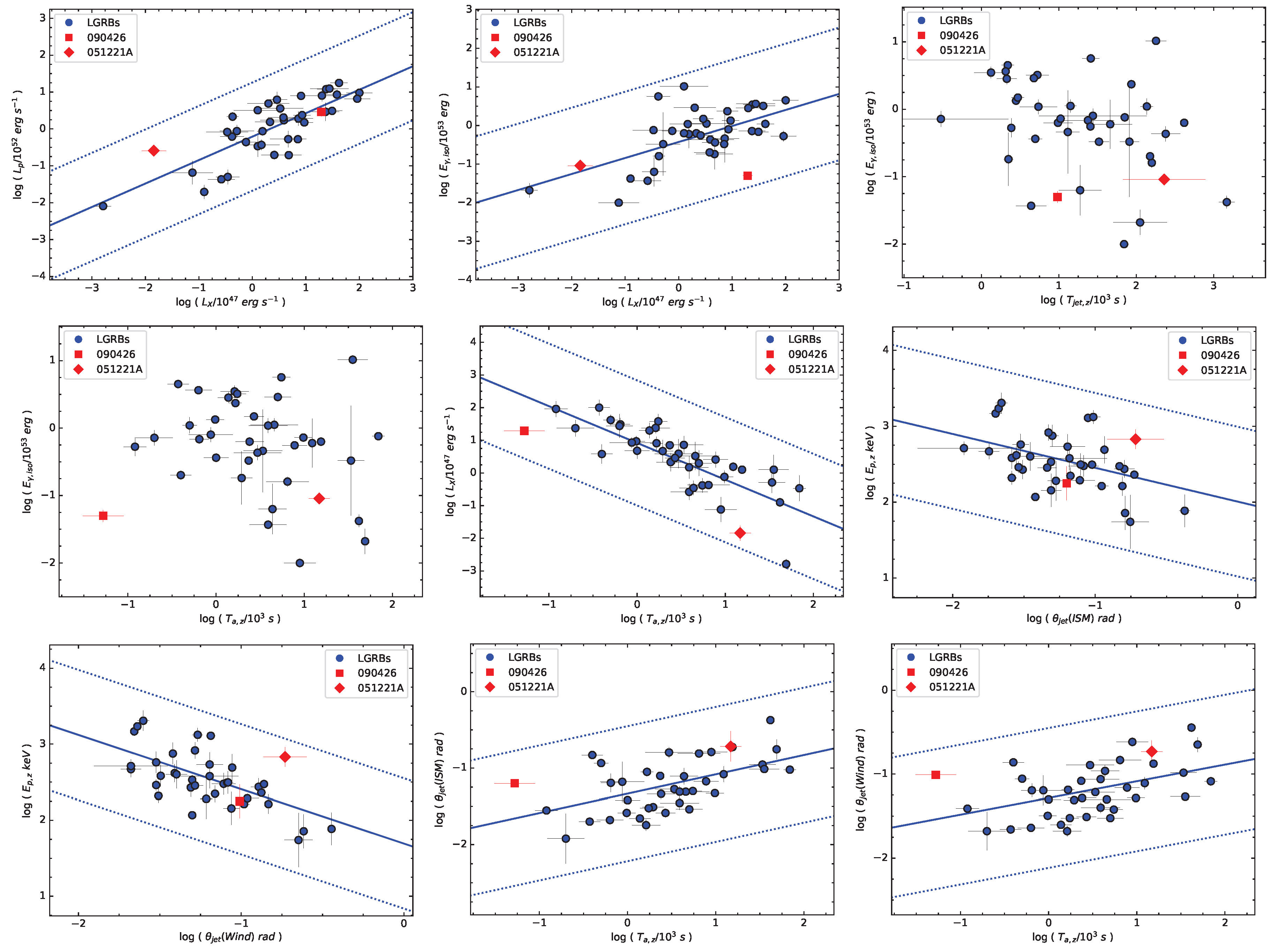 | 050922C | 2.198 | 2.43 ± 0.24 a | 0.028 ± 0.003 a | 0.039 ± 0.004 a | ||||||