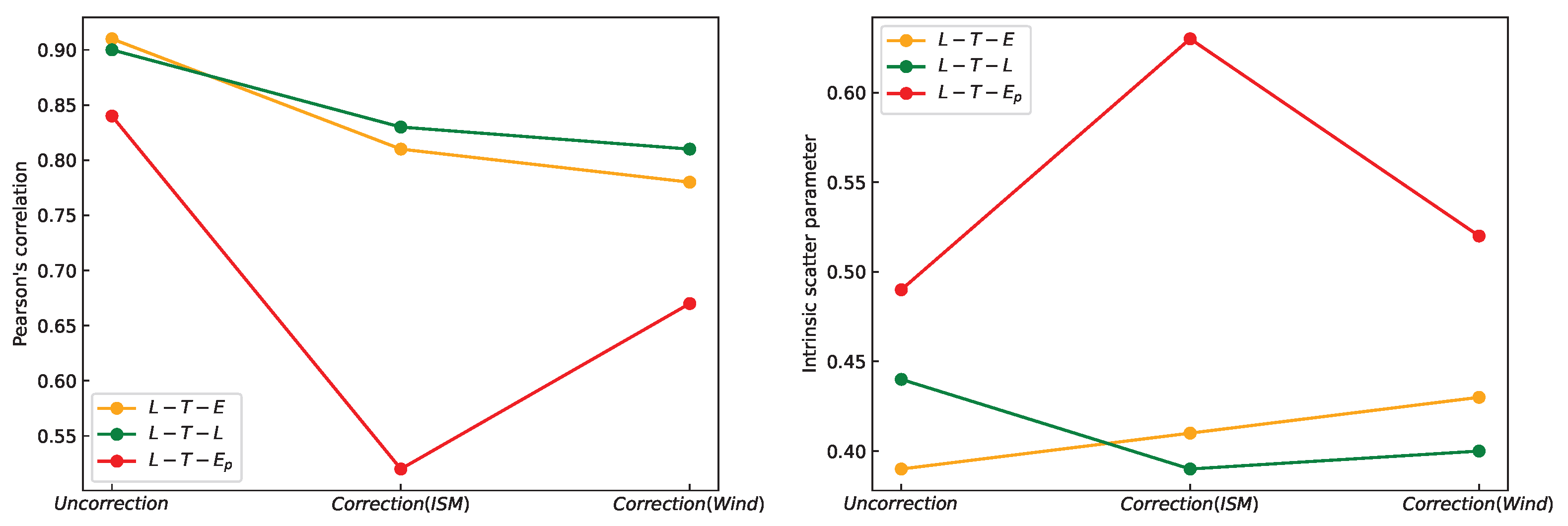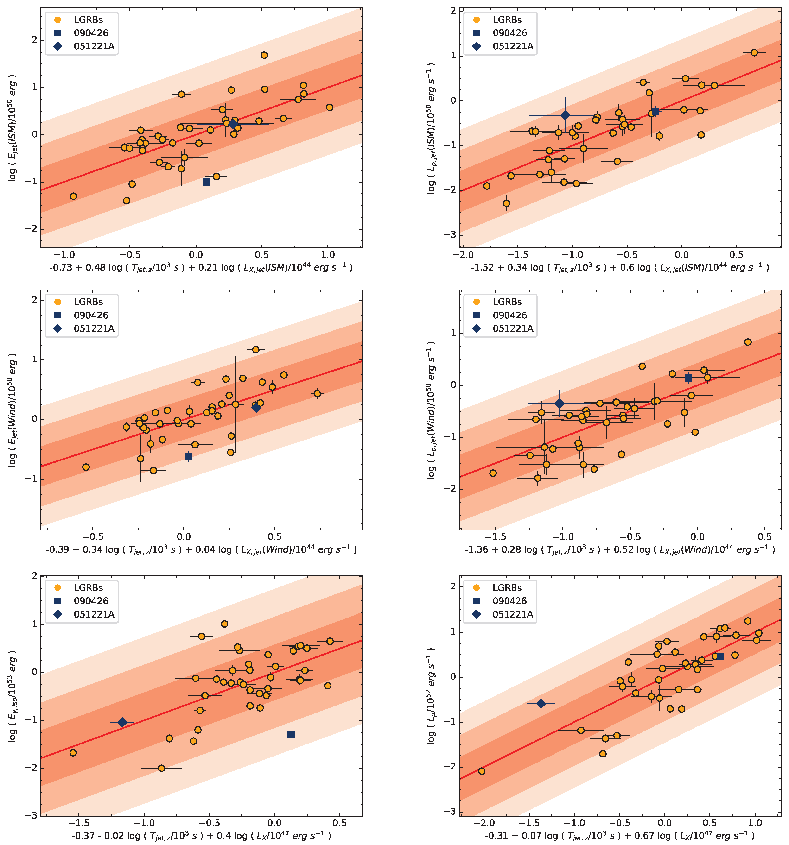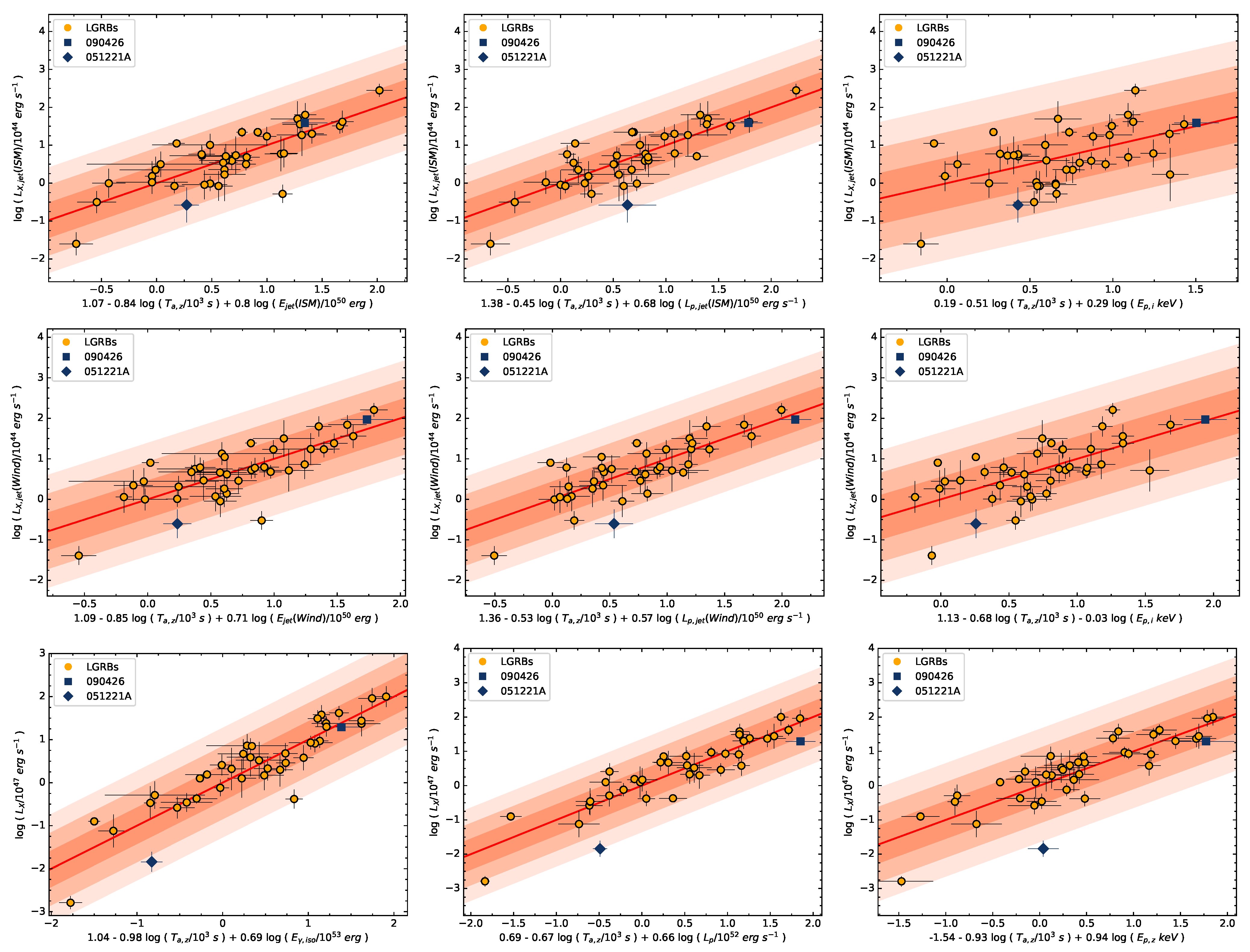 - Deng, C.; Huang, Y.-F.; Xu, F. Pseudo-redshifts of Gamma-Ray Bursts Derived from the L-T-E Correlation. Astrophys. J. 2023, 943, 126. [Google Scholar] [CrossRef]