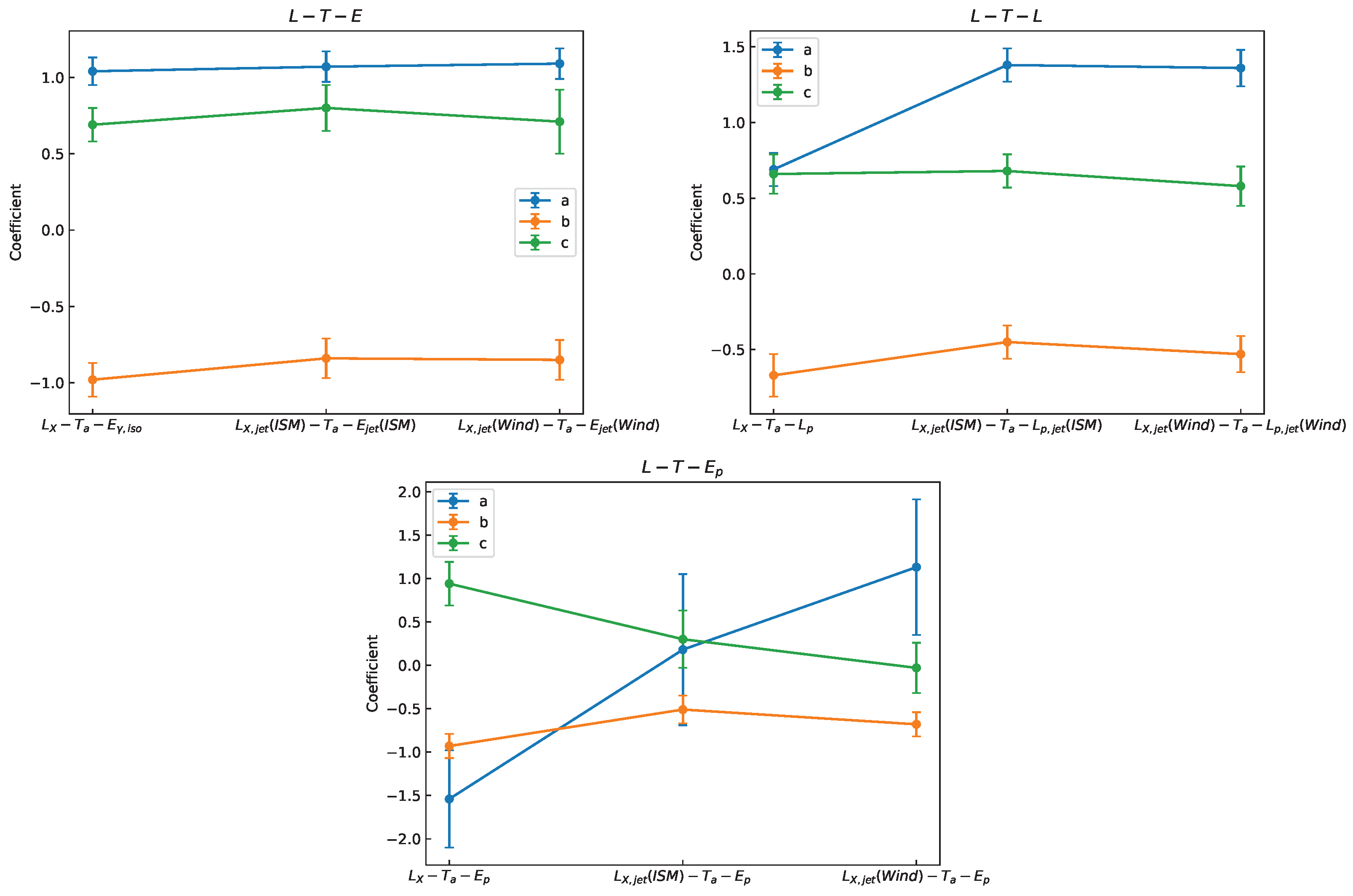 - Xu, M.; Huang, Y.F. New three-parameter correlation for gamma-ray bursts with a plateau phase in the afterglow. Astron. Astrophys. 2012, 538, A134. [Google Scholar] [CrossRef]