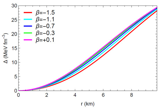 Based on Figure 13, the inequality is satisfied, and thus Herrera’s cracking concept is inferred to be fulfilled by the present model. Consequently, it can be said that the model under consideration is physically stable.