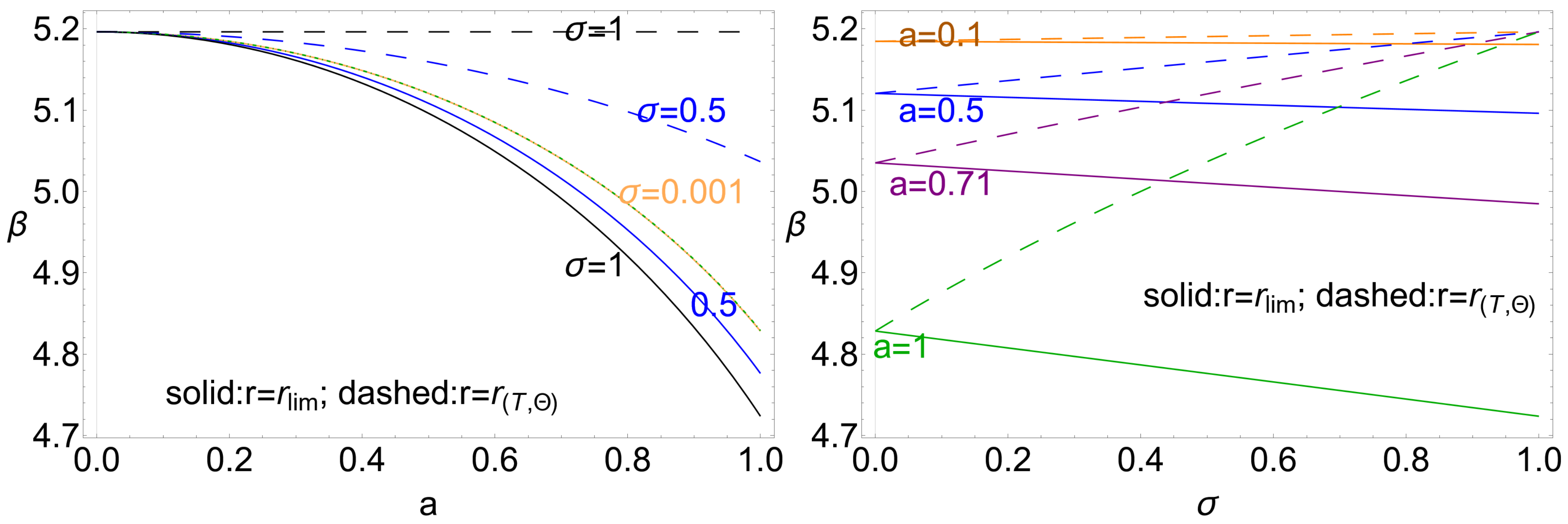 - Vincent, F.H.; Wielgus, M.; Abramowicz, M.A.; Gourgoulhon, E.; Lasota, J.P.; Paumard, T.; Perrin, G. Geometric modeling of M87* as a Kerr black hole or a non-Kerr compact object. Astron. Astrophys. 2021, 646, A37. [Google Scholar] [CrossRef]
